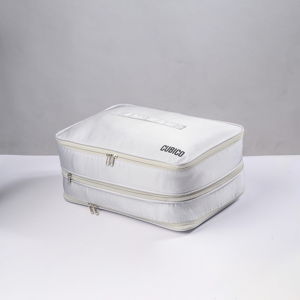 高強度尼龍,可承受壓縮時的壓力(建議只裝滿90 %唷,以便拉鍊拉起)