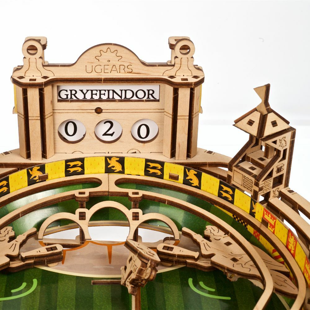這是 Ugears 哈利波特系列的最新型號,基於備受喜愛的系列電影《哈利波特》中的魁地奇魔法遊戲,從而打造出的遊戲台!電影中玩家在空中競技場中飛行,同時嘗試將快浮投擲或擊中對手一側的三個圓環。場上,每次得分10分,任何抓住魁地奇的隊伍均可獲得 150 分並贏得比賽。