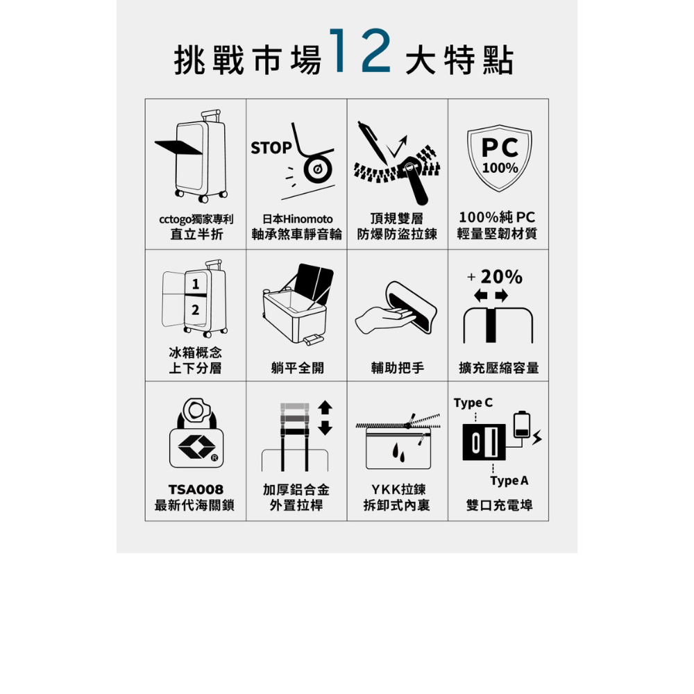 20%擴充空間+乾濕分離+可拆洗內裡+雙口充電,出國需求全包。