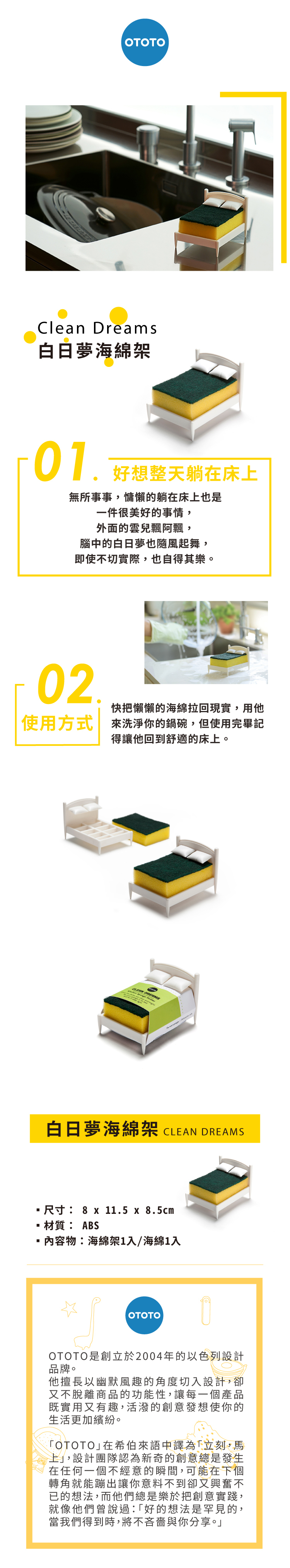 快把懶懶的海綿拉回現實,用他來洗淨你的鍋碗,但使用完畢記得讓他回到舒適的床上。