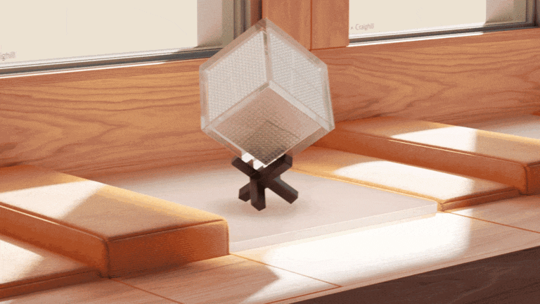 乍看之下,這是一個由八塊金屬組成的立方體,被完美的放置在透明的盒子裡
