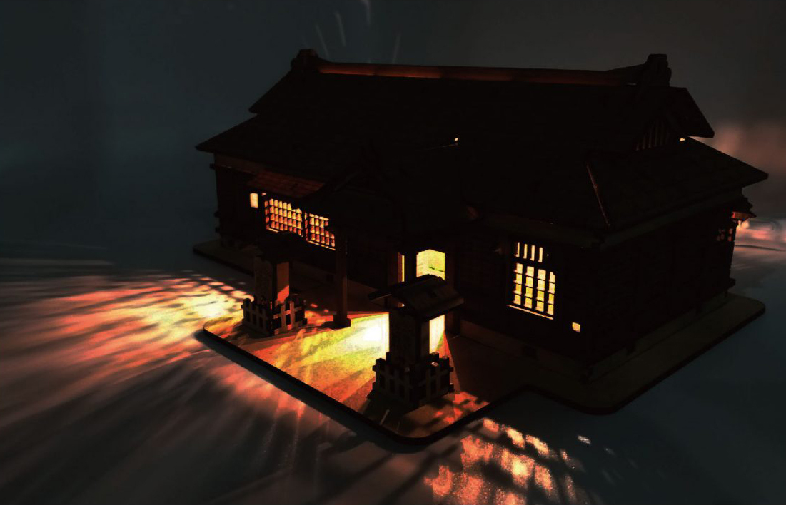插上USB,古色古香的神社模型就可以變成一個可愛的小夜燈