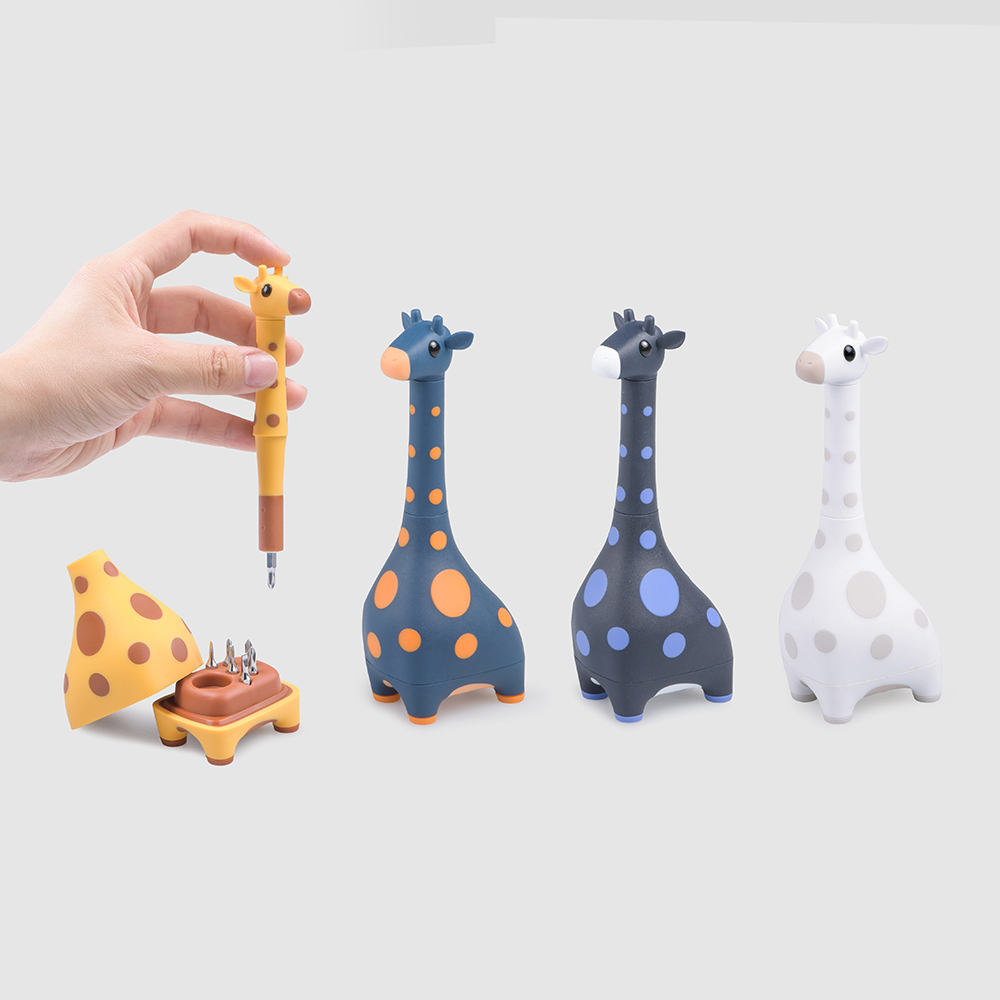 Giraffe有著一對俏皮的耳朵,和完美曲線的肚子,裡面收藏6支最常使用、富有磁性的起子頭,再搭配身體上的斑點,真是可愛翻了!