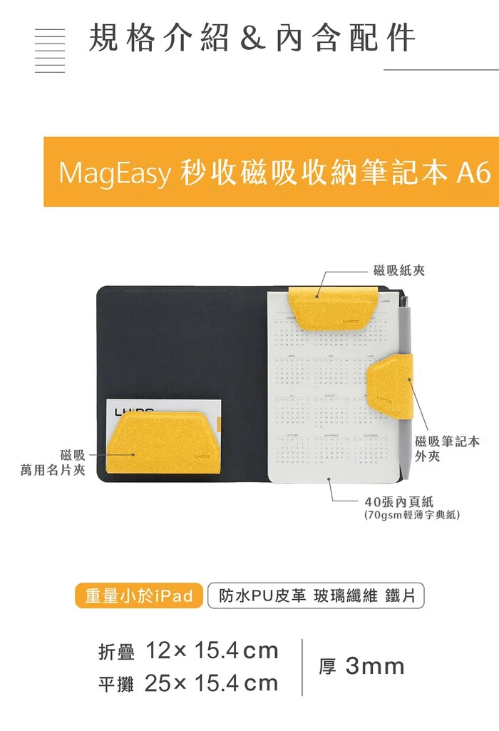 根據不同情況用磁吸模組收納各種物品,創造專屬於您的MagEasy™磁吸收納筆記本。