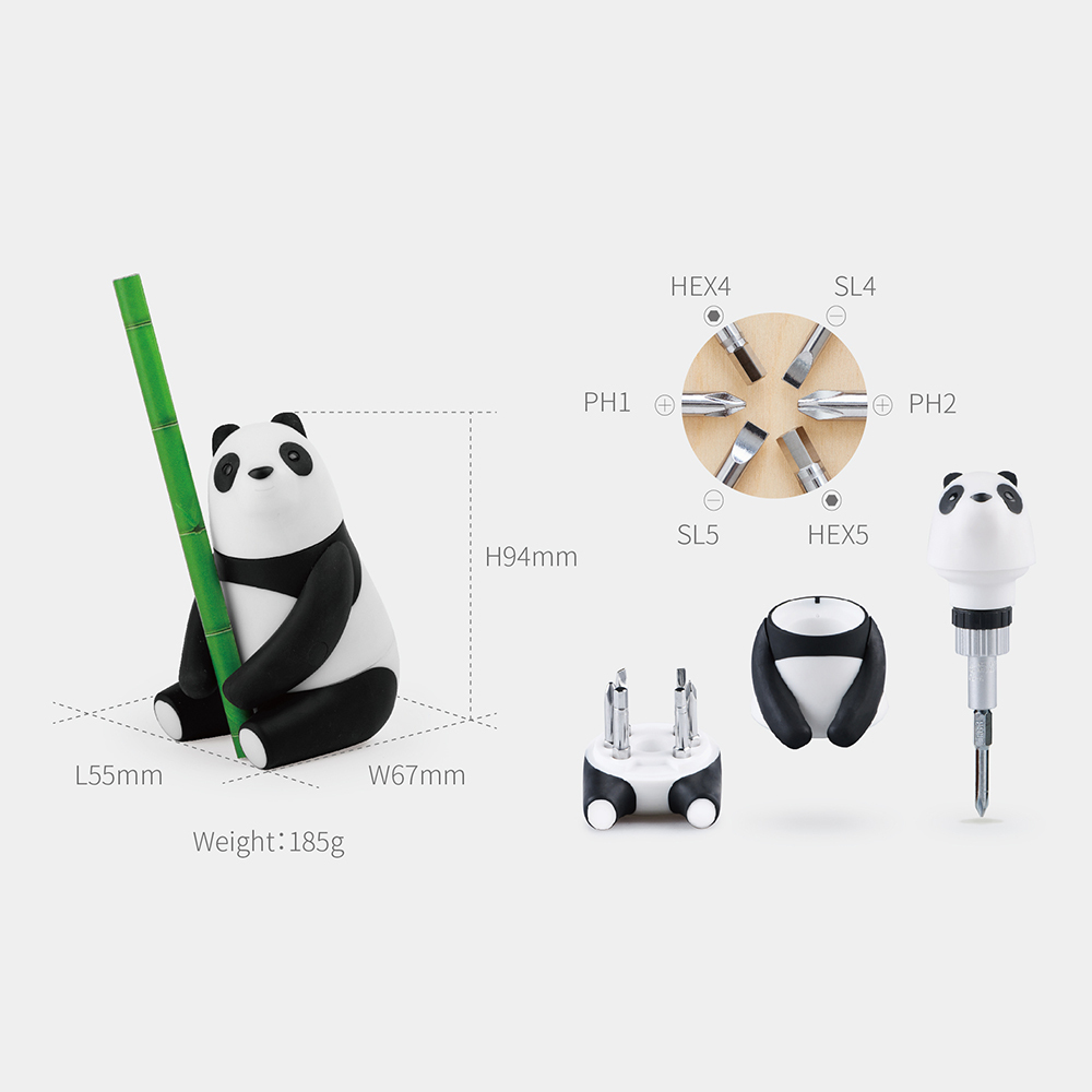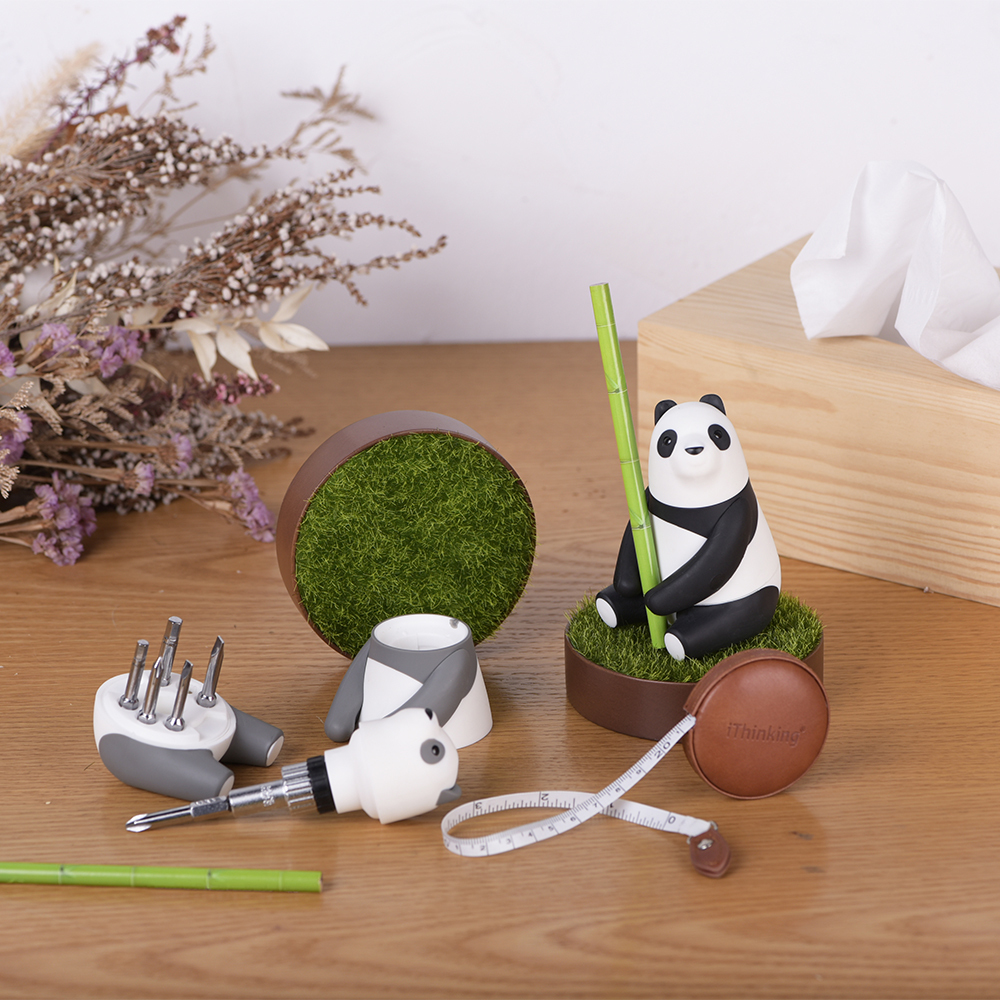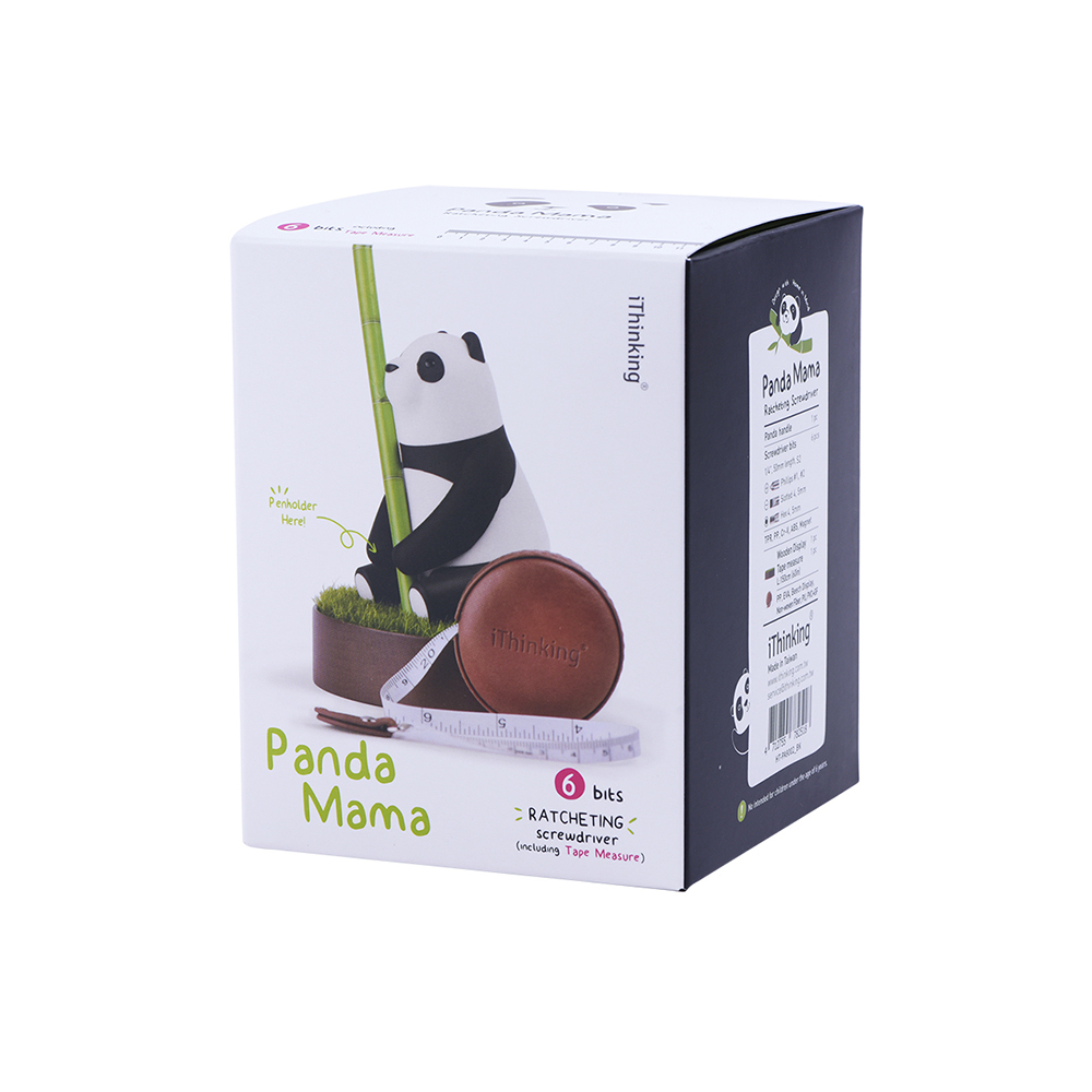 Panda Mama頭部連結有專利設計的三向棘輪起子座功能,還有附帶皮尺
