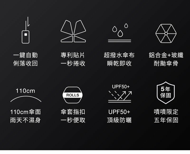 ROLLS Light 瞬間捲收傘 (手開-自動收到底)