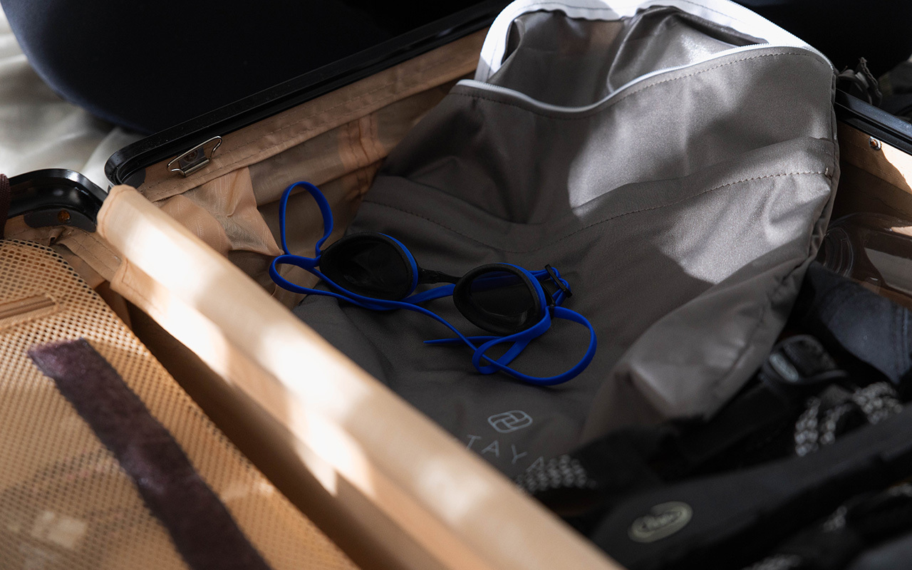 將玩水衣物放在後側拉鏈袋,前側則可於放置髮圈、門票等小物