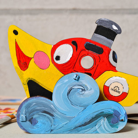 適合5歲以上的孩童組裝,你可以獨自或是跟朋友或家人一起享受組裝及上色的樂趣。木製零件上已刻上船的輪廓,只需照著輪廓塗上你喜歡的顏色