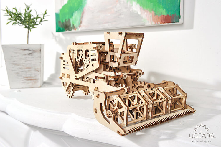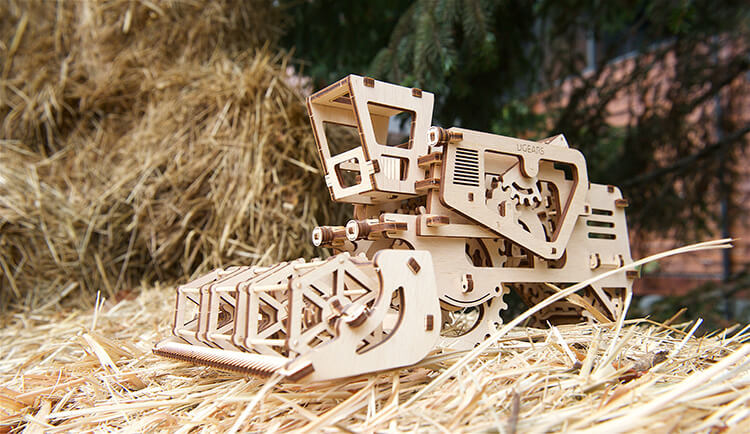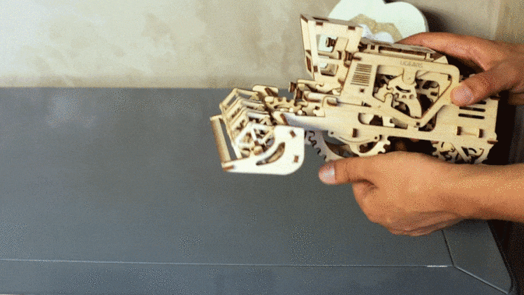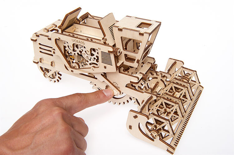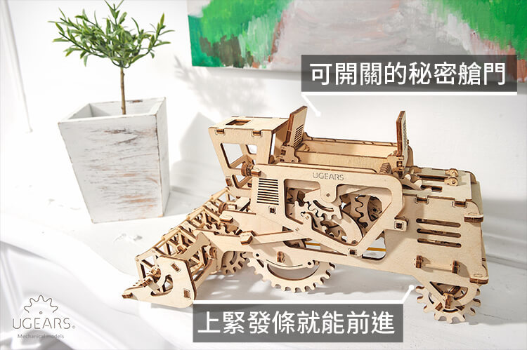 把收割機整台往後拉就可以上緊發條,將左邊的卡鎖放開就會往前走囉