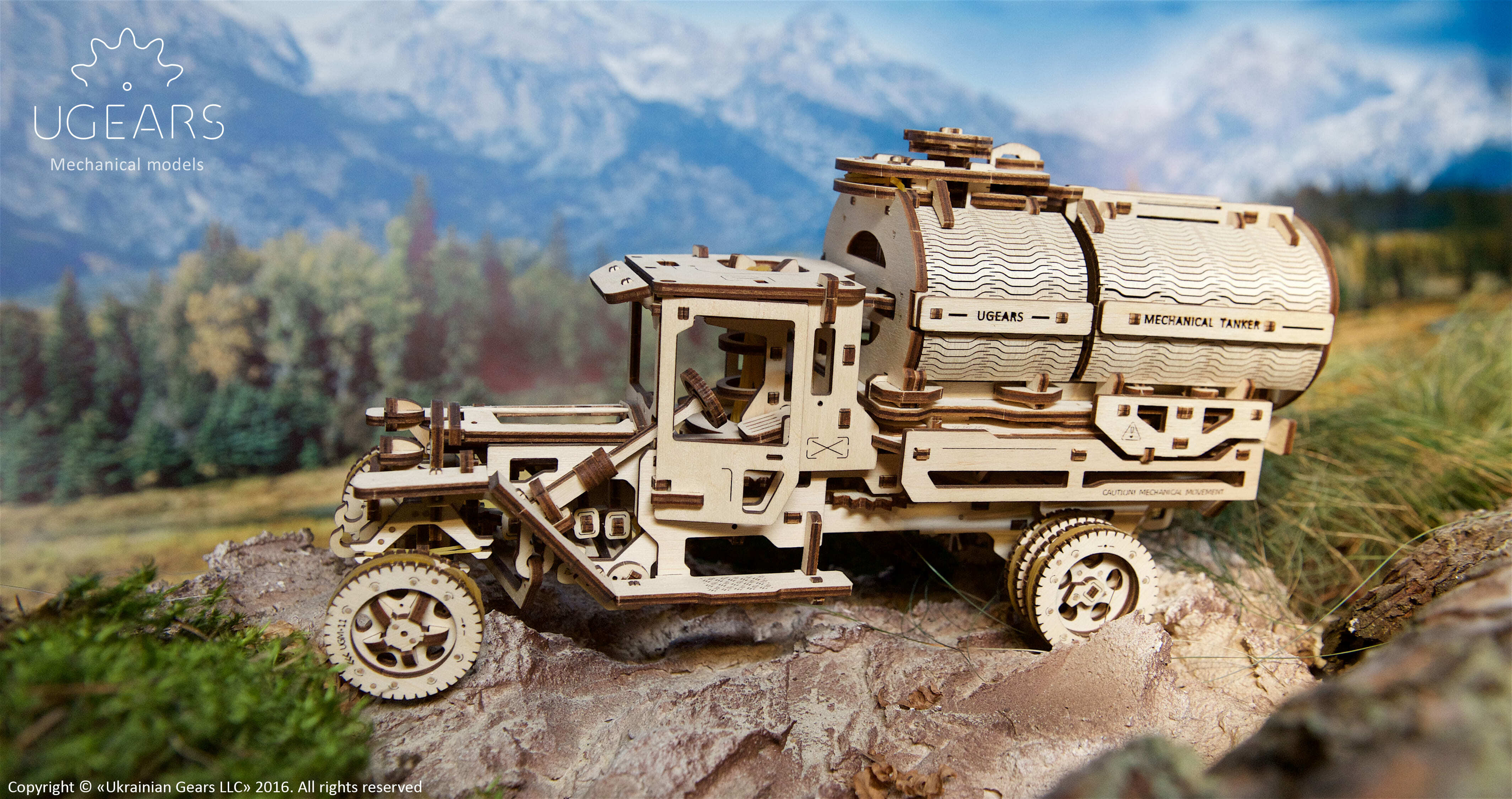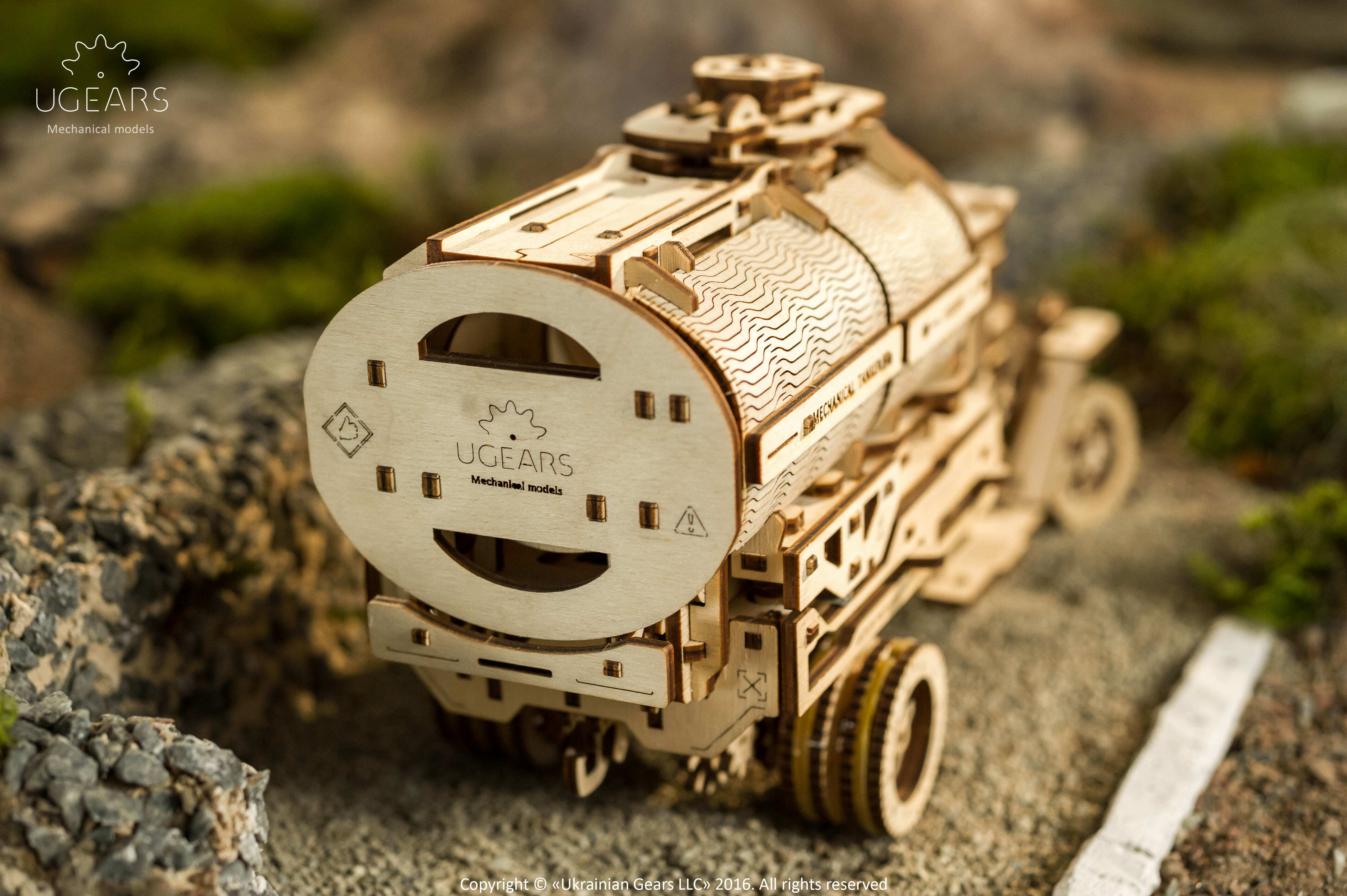 旋轉上面的圓盤就可以讓後面的油罐車打開或關起來