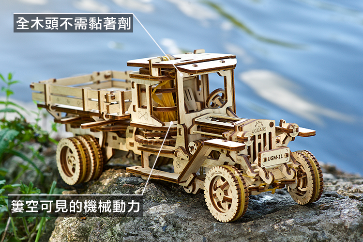 在這台Truck UGM-11四輪驅動卡車你可以打開車門,可以看到方向盤如何連動到車輪,甚至還有跟真正的卡車一樣的油門踏板與進退檔可以操控。
