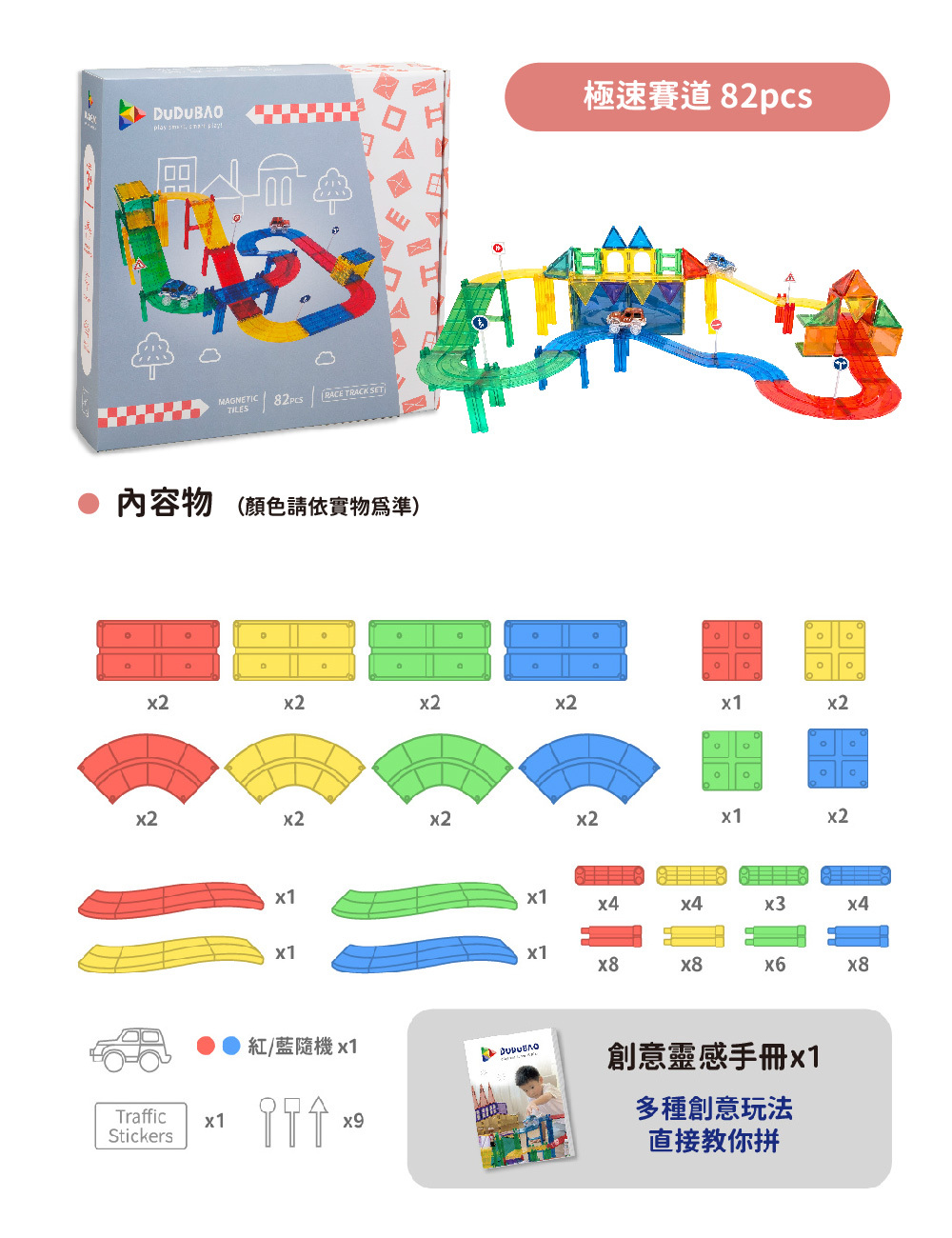 DUDUBAOPlay smart, smart play! 玩轉孩子的想像,讓孩子玩轉未來順著直覺玩樂,滿足孩子的好奇心與成就感我們相信,當孩子主動說出「我想玩!」,就是學習的開始磁力片不只是積木,它是孩子的「想像力練習場」,每一次拼接都能變成新的創作,每一次創造都能發現新的世界。從平面拼圖到立體建構,讓孩子在「玩中創造、玩中探索」。培養出持續挑戰與再造的創造力思維。